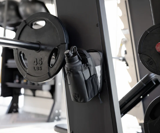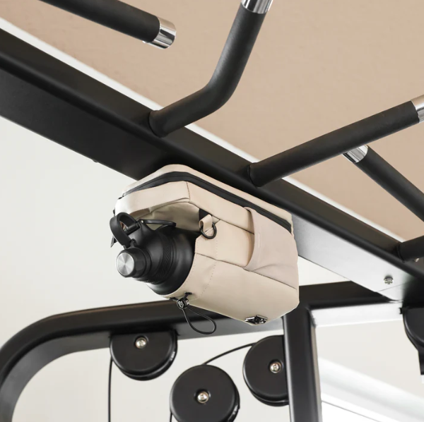 Häng upp väskan direkt på gymutrustningen och håll golvet fritt från röran.