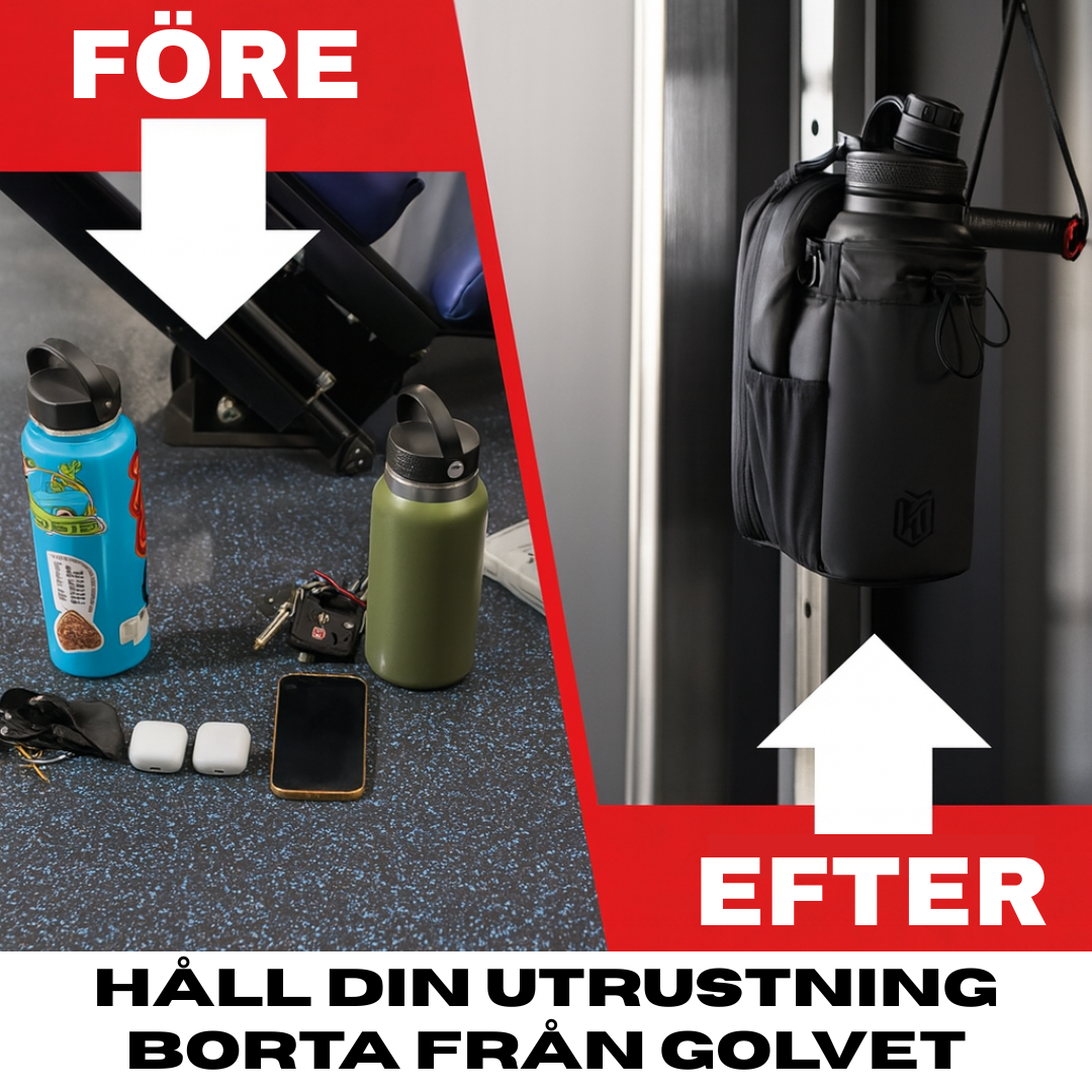Den magnetiska gymväskan kombinerar smart design med robusta material. Häng upp den direkt på gymutrustningen med det starka magnetfästet och håll dina saker organiserade och borta från golvet.